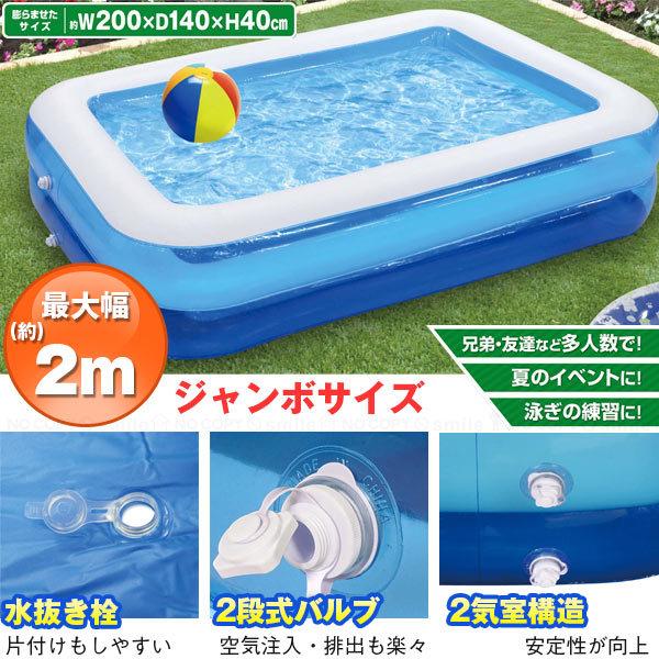 プール 家庭用プール ビニールプール ジャンボサイズ ファミリー 幅2m 四角 長方形 ガレージ 駐車場 駐輪場 庭 玄関 子ども 夏 202205-04