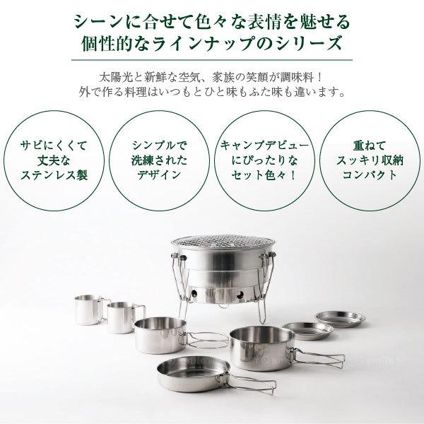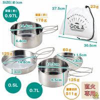 ソラリラ キャンプ アウトドア キャンピング 鍋 フライパン 蓋 皿 セット ステンレス シルバー 軽い 軽量 丈夫 コンパクト スタッキング 収納 調理 道具 料理 初心者 収納袋 シルバー シンプル