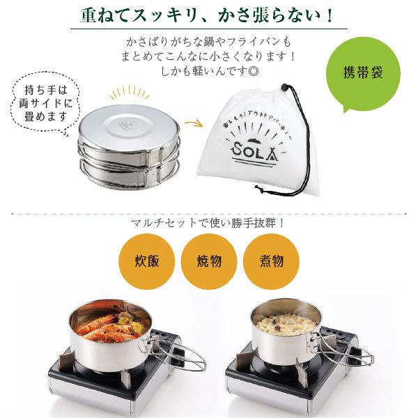 ソラリラ キャンピング鍋 4点セット PP-01 / キャンプ アウトドア 鍋 フライパン 蓋 皿 セット ステンレス 軽量 スタッキング 収納 調理道具 ソロキャンプ