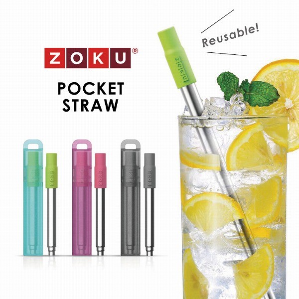 ZOKU ポケットストロー 「ポスト投函送料無料」/ ステンレス ストロー ゾク マイストロー 携帯用 折りたたみ ホルダー ケース付き クリーニングブラシ付き