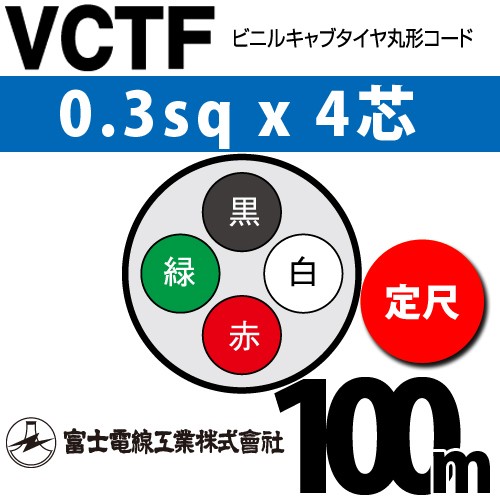 富士電線工業 VCTF 0.3sq×4芯 100m (定尺) 0.3mm 4心 ビニルキャブタイヤ丸形コード (丸型ケーブル) VCTF-0.3-4C-100m (15200104)