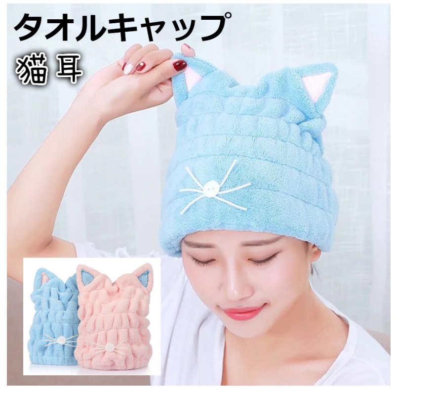タオルキャップ ねこ耳 ドライキャップ 吸収 速乾 キッズ 子供 水泳 ヘアターバン マイクロファイバー スイミング 水泳 プール お風呂 ドライ