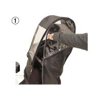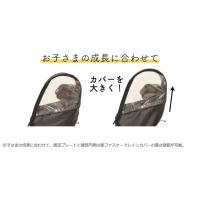 お子さまの成長に合わせて、固定プレートと背部内側の面ファスナーでレインカバーの高さ調節もできます。