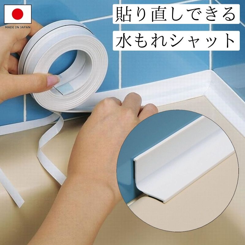 貼り直しのできる水もれシャット 浴槽 洗面台 洗面所 キッチン すきま 水漏れ 隙間埋め 隙間テープ 水回り 塞ぐ 埋める 防水テープ 日本製 メール便