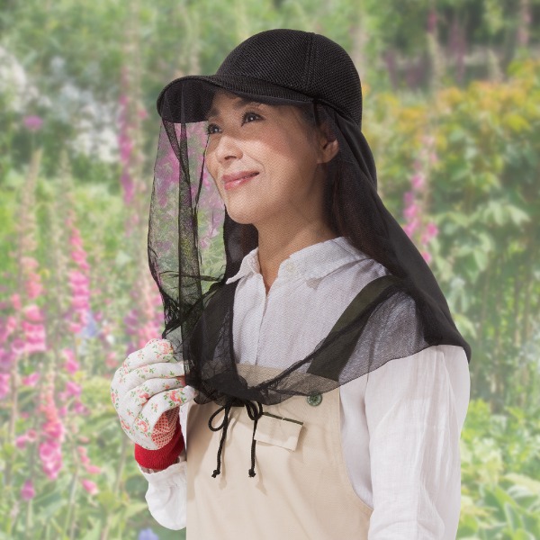 虫を防いでしっかりUV対策できるネット付きキャップです。