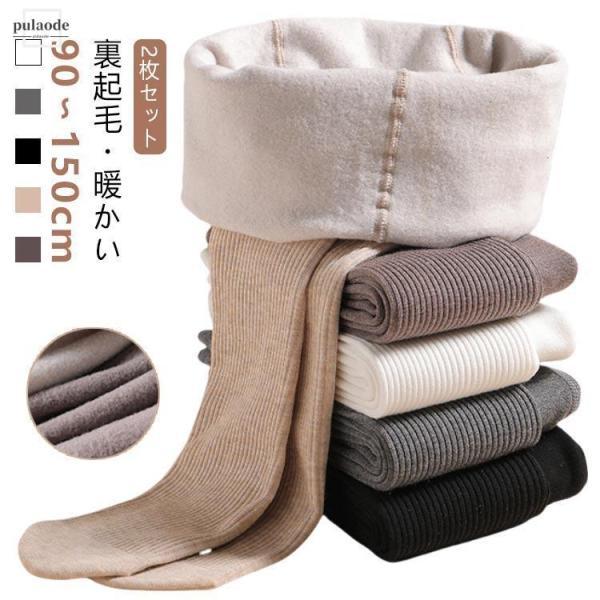 【2枚セット】裏起毛 リブ タイツ キッズ ベビー 綿混 子供 90-150cm ジュニア 女の子 リブタイツ リブ編み 暖かい 黒 白 おしゃれ 赤