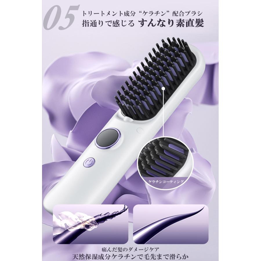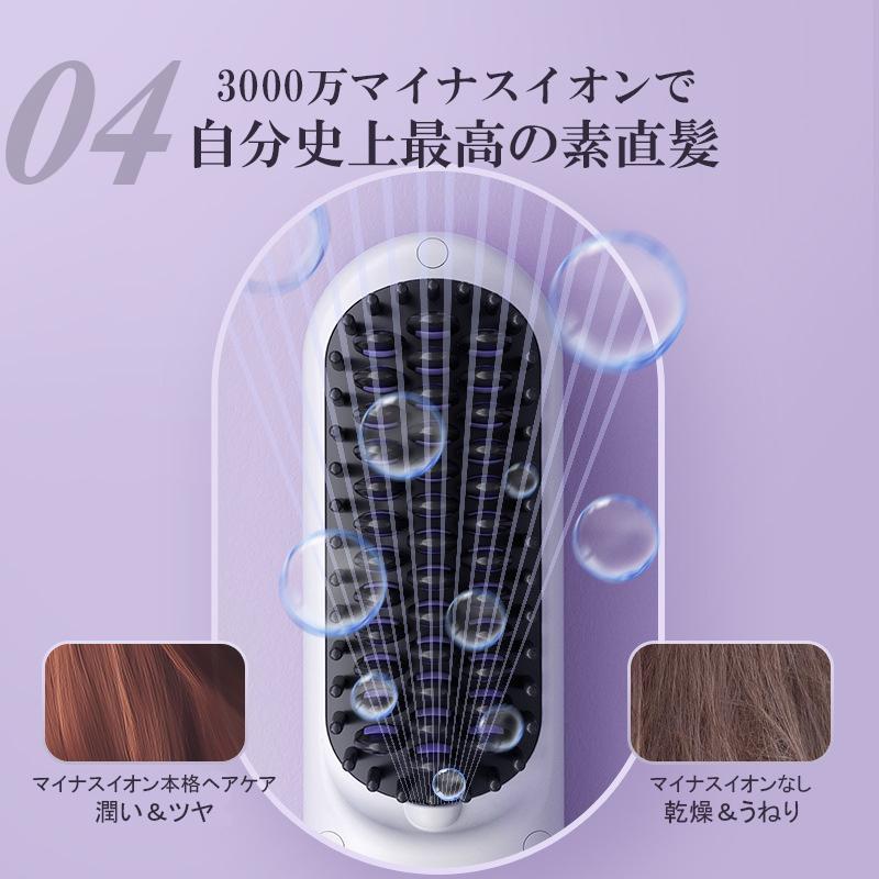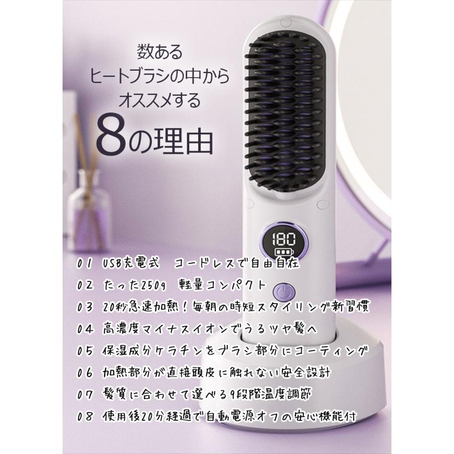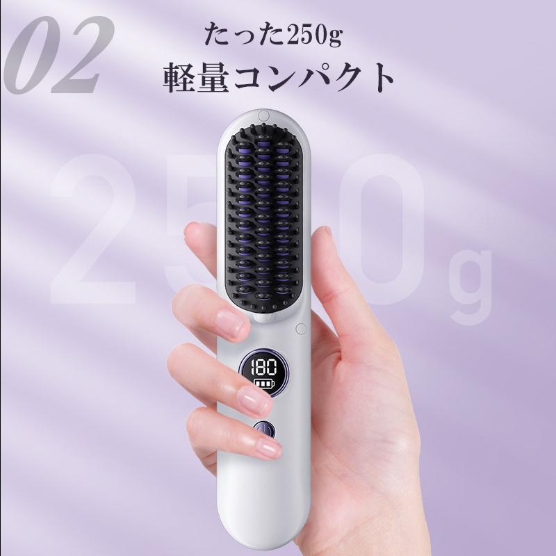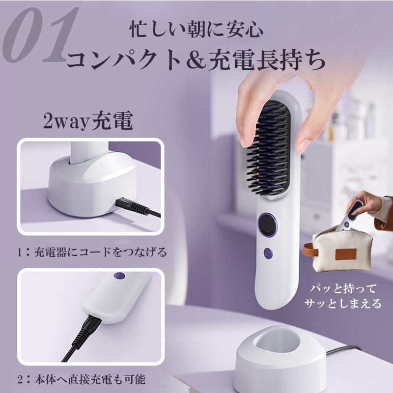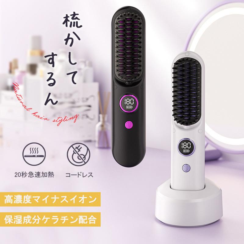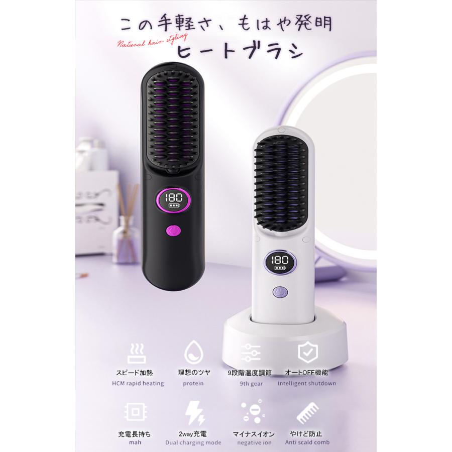 ヘアアイロンブラシ ヘアアイロン ストレートアイロン コードレス スタンド付き 軽量 ヒートブラシ マイナスイオン くせ毛 うねり USB充電 携帯用 9段階温度調整