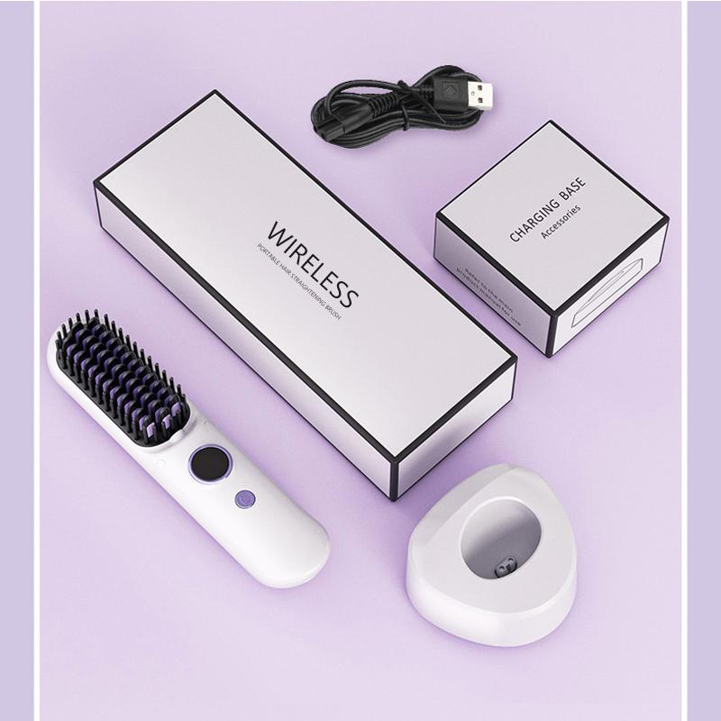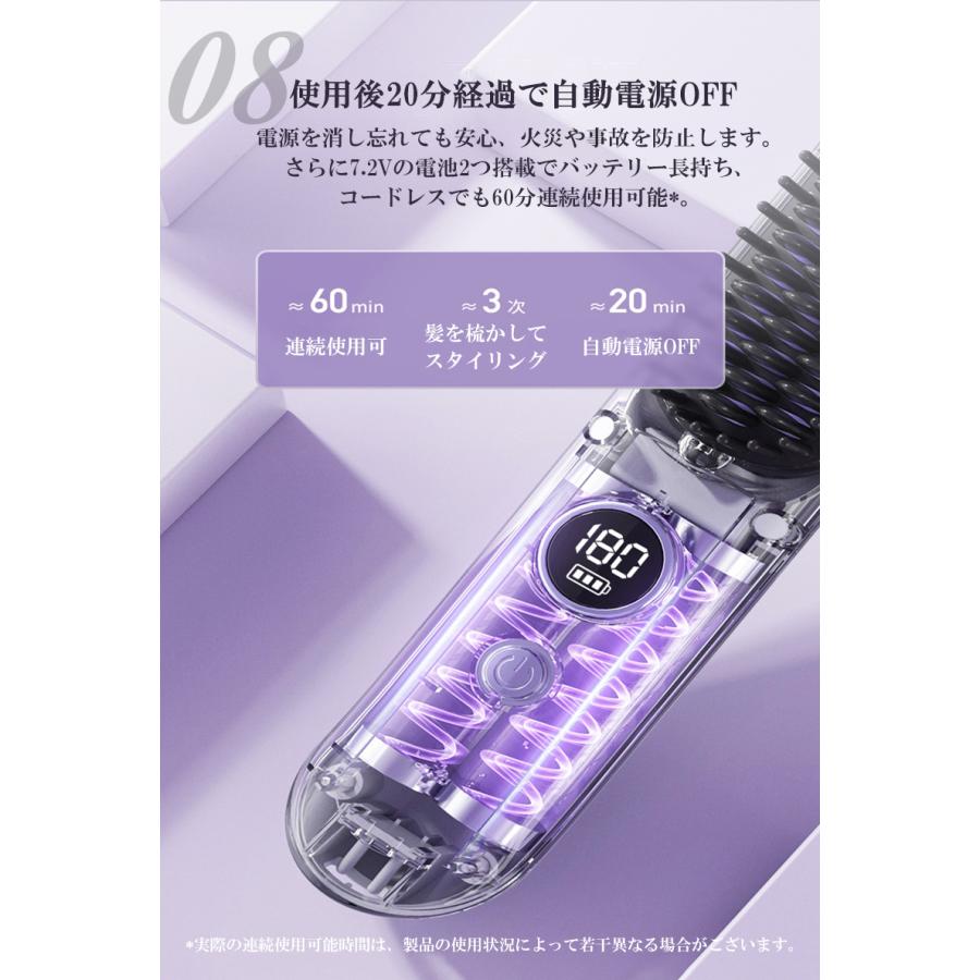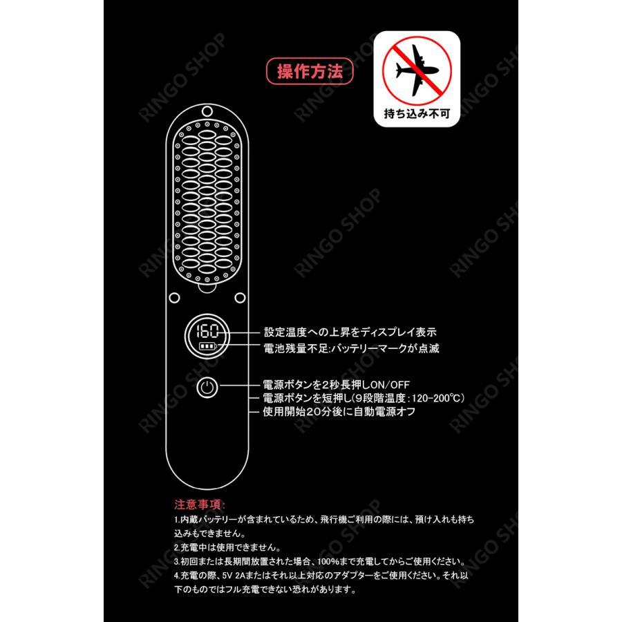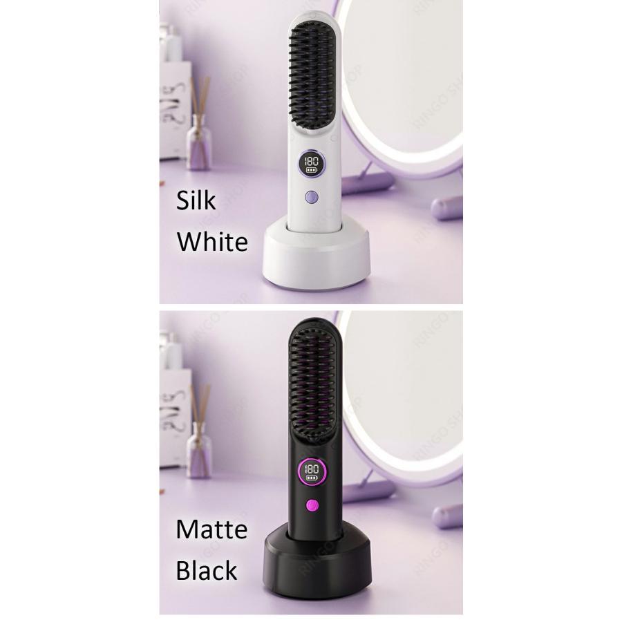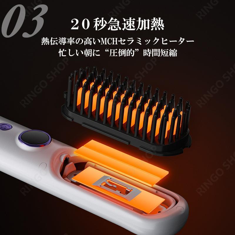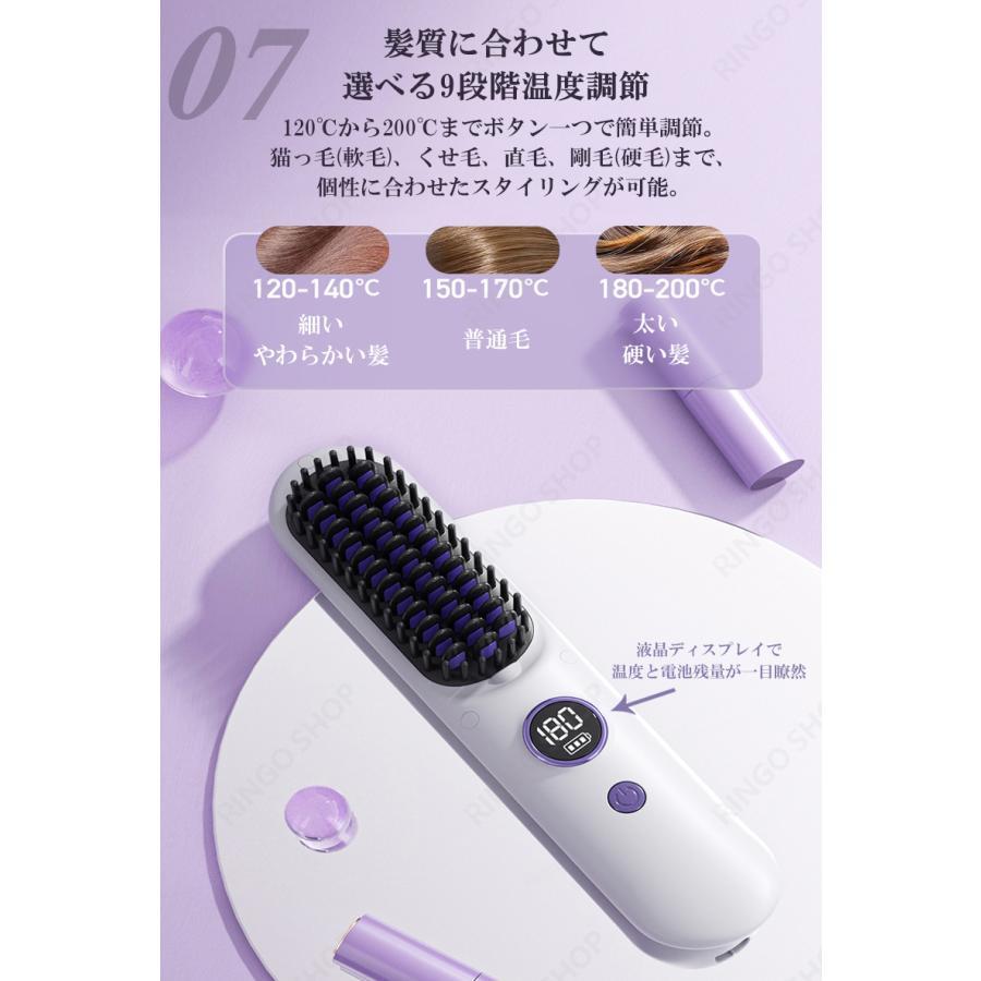 ヘアアイロンブラシ ヘアアイロン ストレートアイロン コードレス スタンド付き 軽量 ヒートブラシ マイナスイオン くせ毛 うねり USB充電 携帯用 9段階温度調整