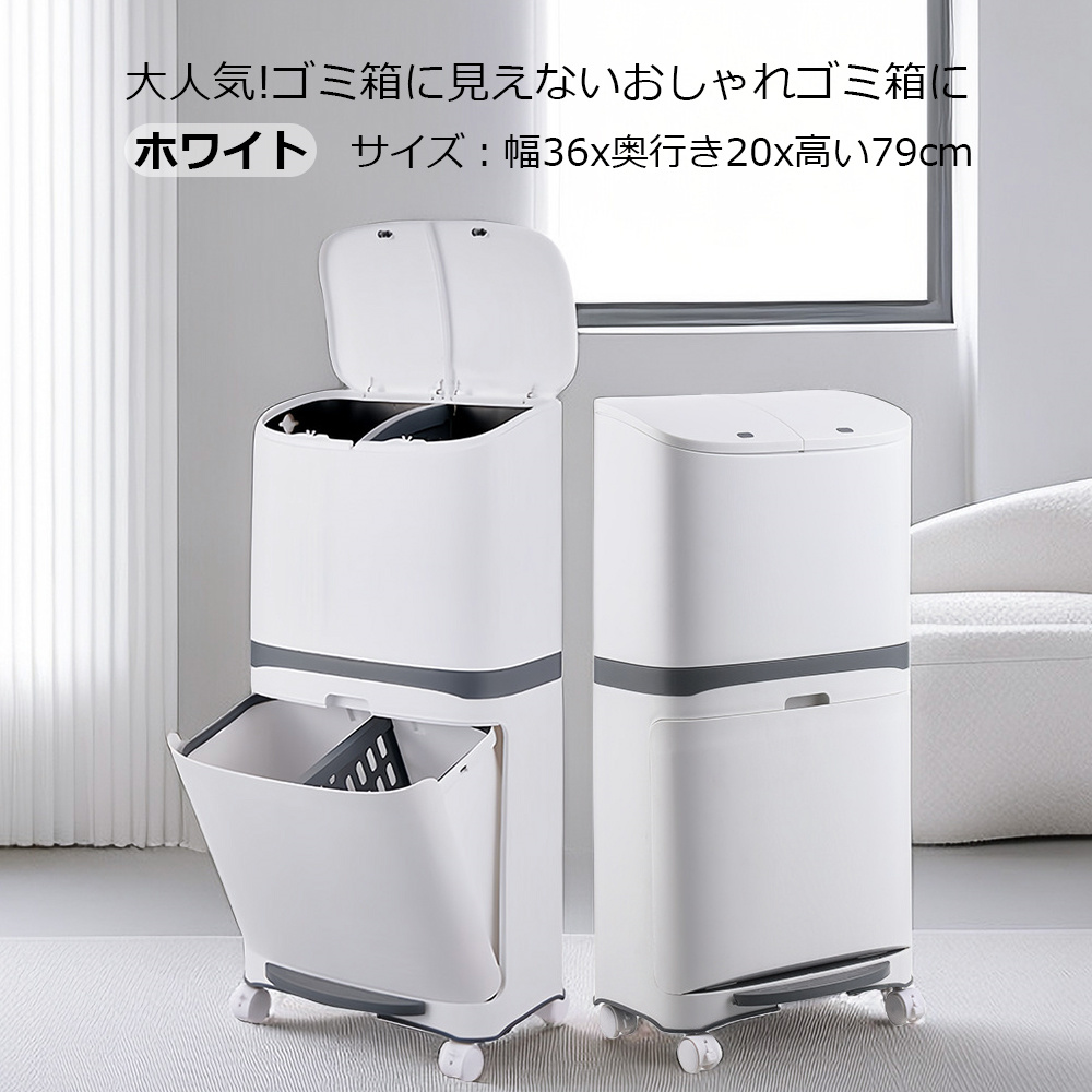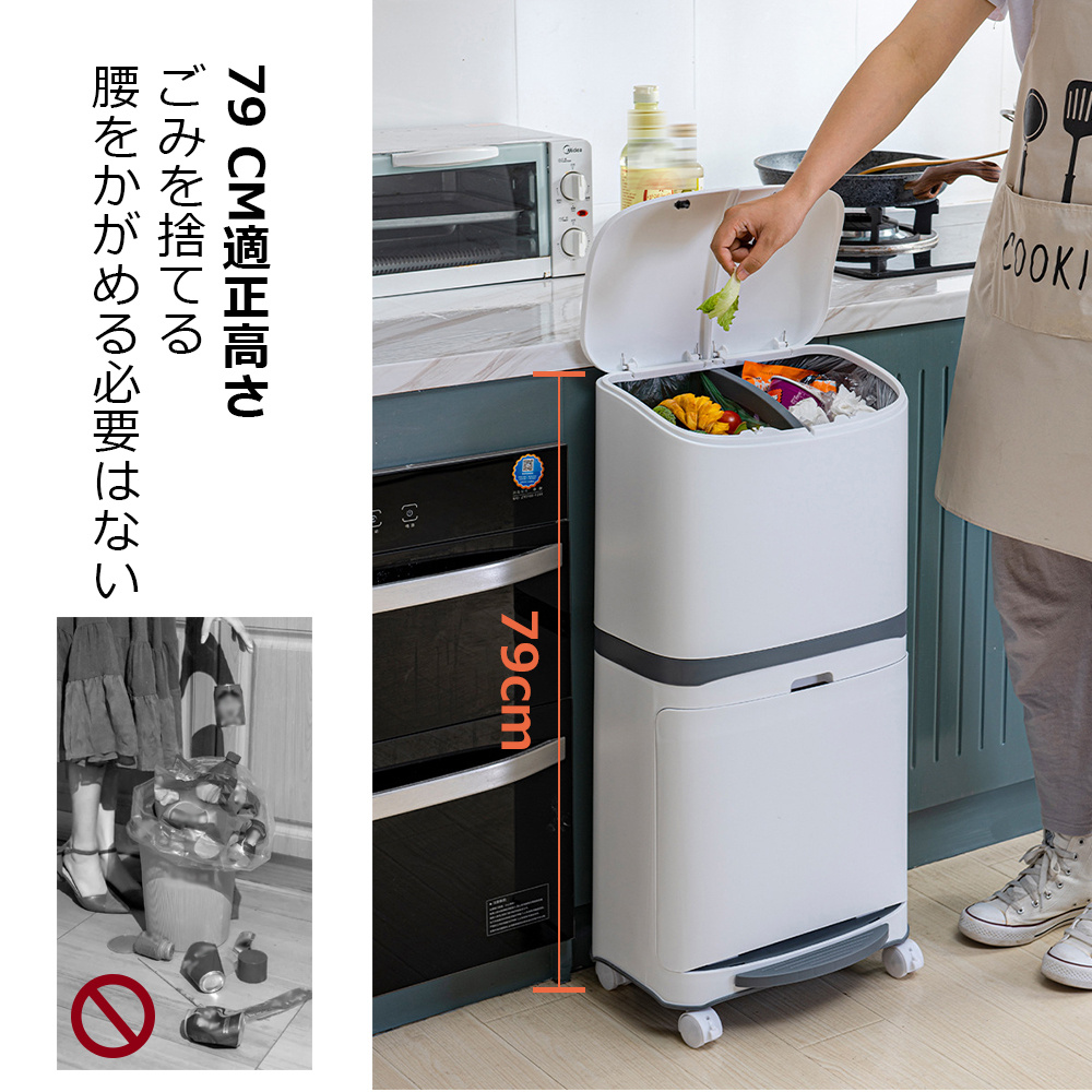 ゴミ箱 45L袋可 45リットル袋可 おしゃれ フロントオープン 分別 ダストボックス 積み重ね キッチン スリム シンプル 大容量 ふた付き 縦型 カウンター下