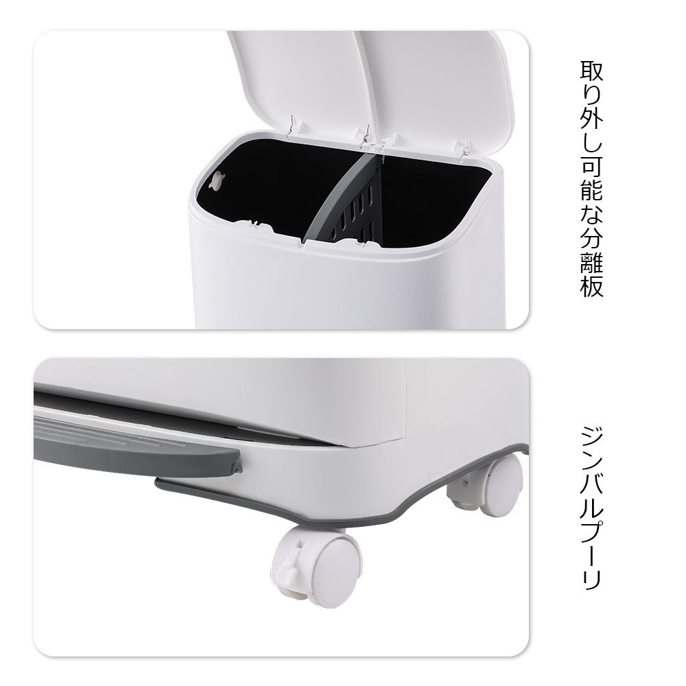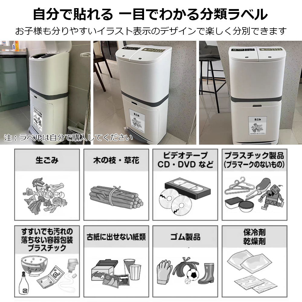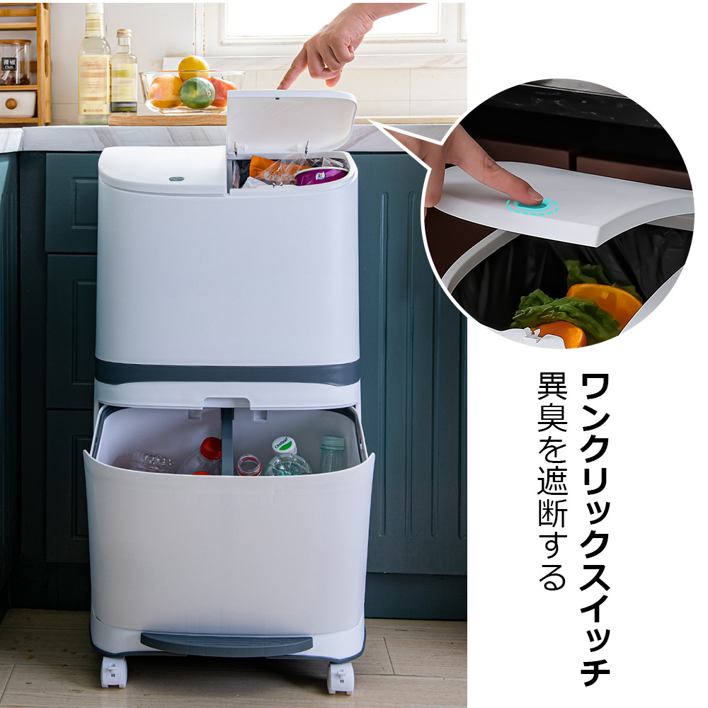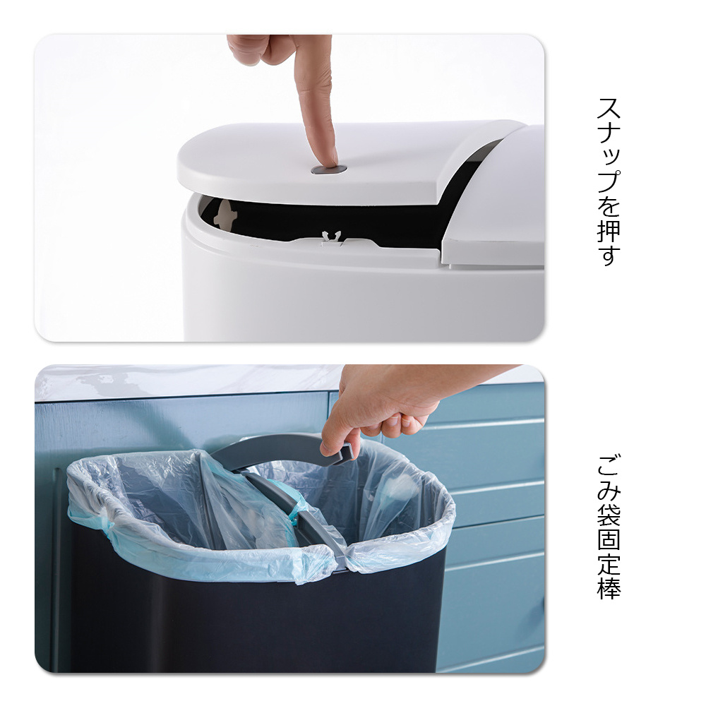 通常のゴミ袋のほかに、切れ込み部分にゴミ袋の持ち手を引っ掛けて分別することができます。