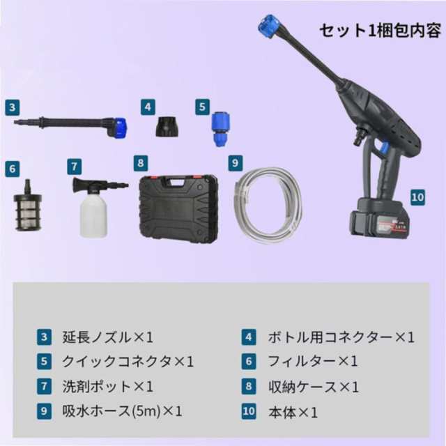 3000mAhバッテリー付属してフル充電した場合は約30分間連続使用が可能,コードレス 充電式で性能に優れたバッテリー式高圧洗浄機なので、