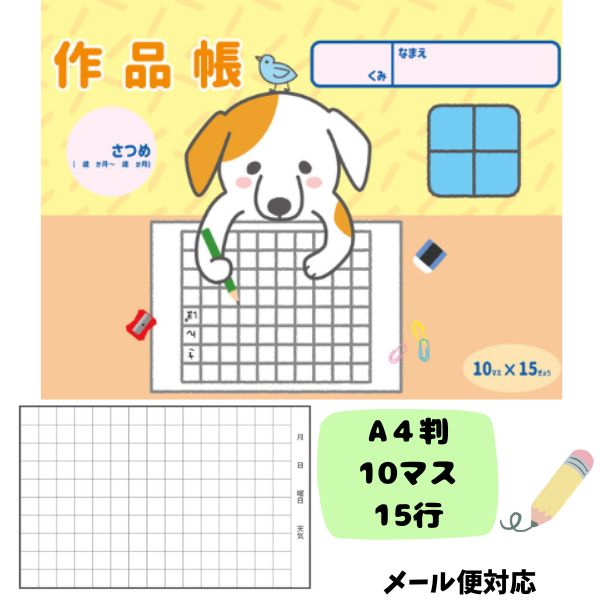 【人気】作品帳 A4判 10マス 15行 小学生 幼児 ダイアリー 思い出 夏休み 春休み 冬休み こども 子供 キッズ おすすめ 作文 記録 人気【メール便対応 7冊まで】