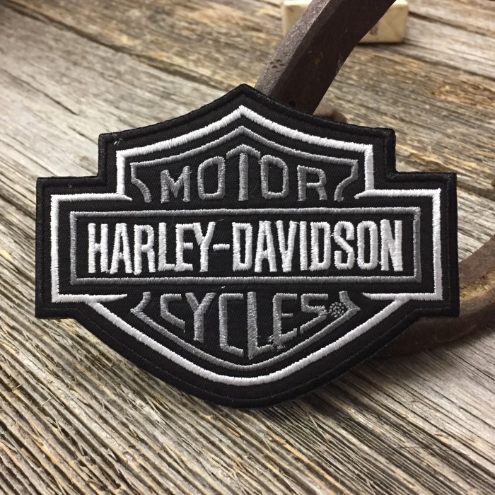 送料無料 ハーレー B&S ロゴ 刺繍 ワッペン ◆ パッチ Harley バー アンド シールド バイク グレー CAWP21