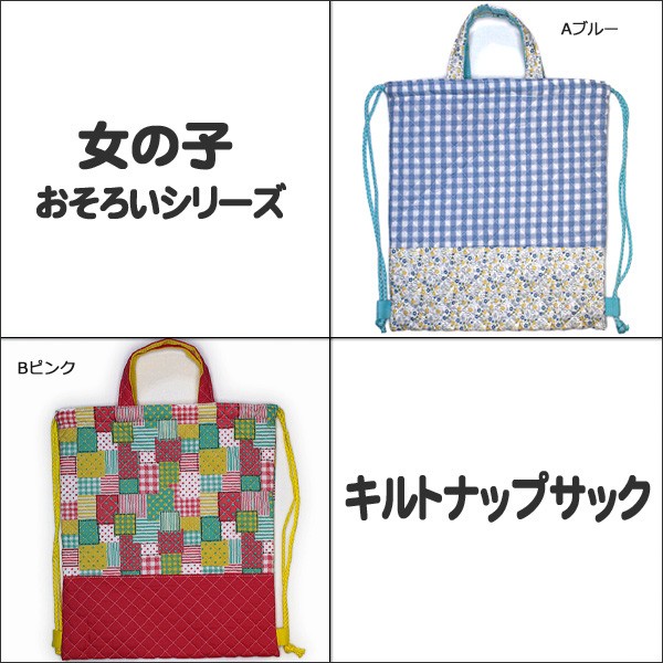女の子 キルトナップサック Aブルー Bピンク B0051 /