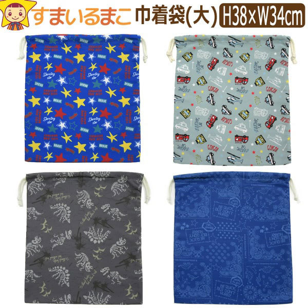 男の子 総柄030 きんちゃく(大) 巾着 子供 星 乗り物 恐竜 バンダナ k0620