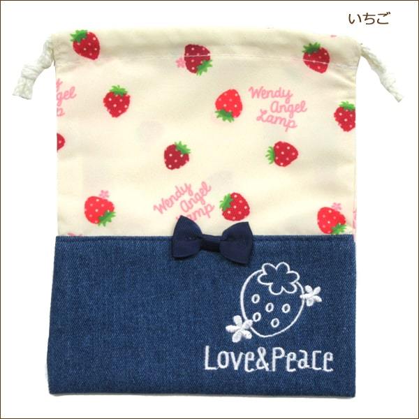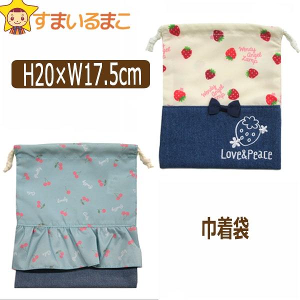 女の子 切替柄033 きんちゃく袋 巾着 いちご チェリー k0640