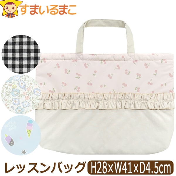 | b0591/女の子 レッスンバッグ チェック/チェリー/フラワー/アイスクリーム | ||