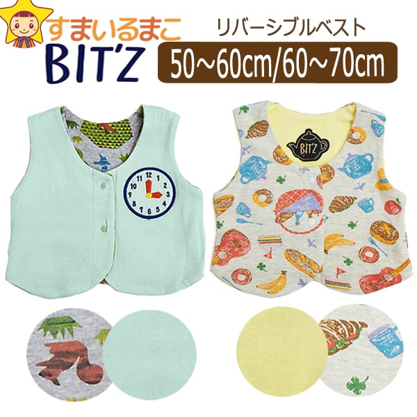 | d0819/男の子 BIT'Z(ビッツ) リバーシブル ベビーベスト B135010 50〜60cm / 60〜70cm | |||||||||||