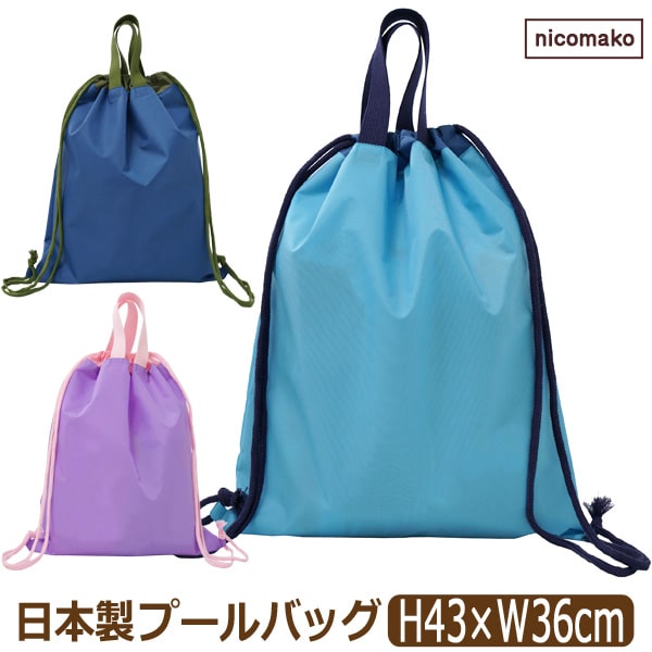 | nicomako当店オリジナル商品 b0607/男の子 女の子 日本製 ナイロン プールバッグ サックス/ネイビー/パープル | ||