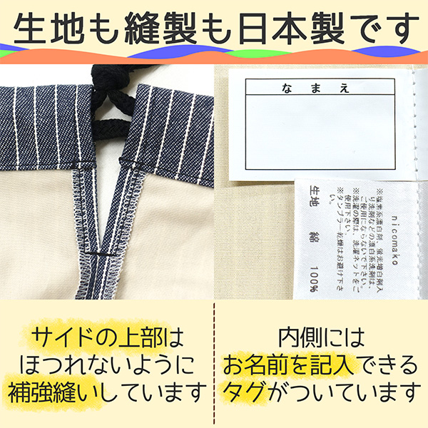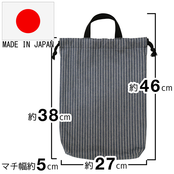 | nicomako当店オリジナル商品 b0637/男の子 女の子 日本製 大きめサイズ 総柄 持ち手付き 巾着 シューズバッグ ヒッコリー | ||