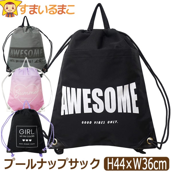 | 商品説明 | ※海水浴やスイミングスクールなどに最適◎!内側はっ水加工付きナップサック/プールバッグ♪ ※上面に手持ち紐付き。開口は紐を引っ張ることで閉まる巾着方式。手提げにも、リュックにもなるとても便利な2WAY◎! ※フロントにはファスナー付きの大きなポケットが付いています。 ※大きめサイズなのでお子様の部活・習い事・体操着入れ・普段使いなどにもオススメ! | |
