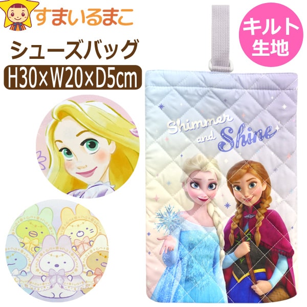 上履き入れ シューズバッグ キルト キャラクター 女の子 キャラ074 ラプンツェル アナと雪の女王 アナ雪 すみっコぐらし b0660 ディズニー サンエックス