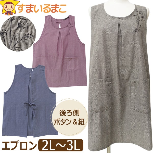 | k1281/レディース 大きいサイズ 着痩せ 後ろボタン&ヒモ留め エプロン W-66004 2L-3L | ||