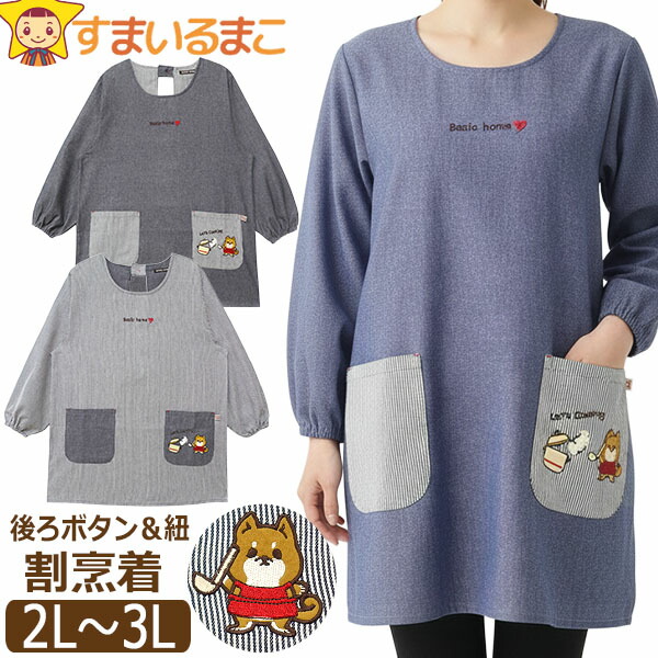 | k1345/レディース 大きいサイズ 後ろボタン&ひも 割烹着 エプロン 88695 2L-3L | ||