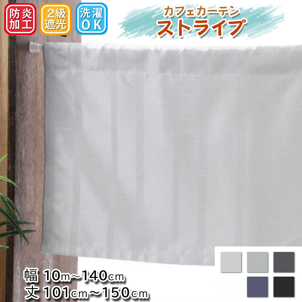 カーテン カフェカーテン 遮光 おしゃれ 縦長 オーダー 小窓 ストライプ 「幅10cm〜140cm 丈101cm〜150cm」