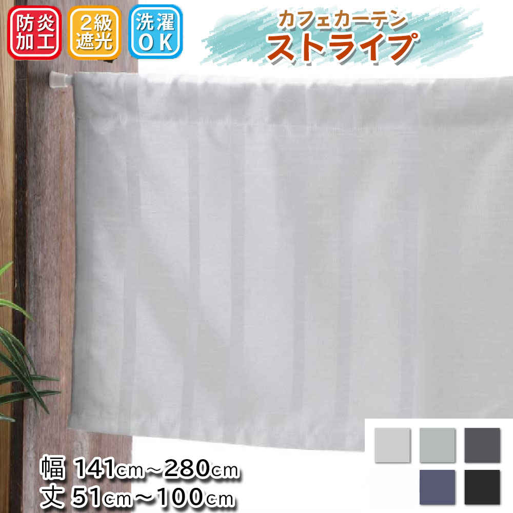カーテン カフェカーテン 遮光 おしゃれ 縦長 オーダー 小窓 ストライプ「幅141cm〜280cm 丈51cm〜100cm」