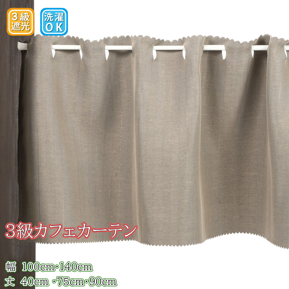 遮光カーテン 小さいカーテン カフェカーテン ストライプ 遮光 3級 おしゃれ ロング丈 ロング 小窓カーテン 幅約100cm・約140cm×丈45cm・75cm・90cm