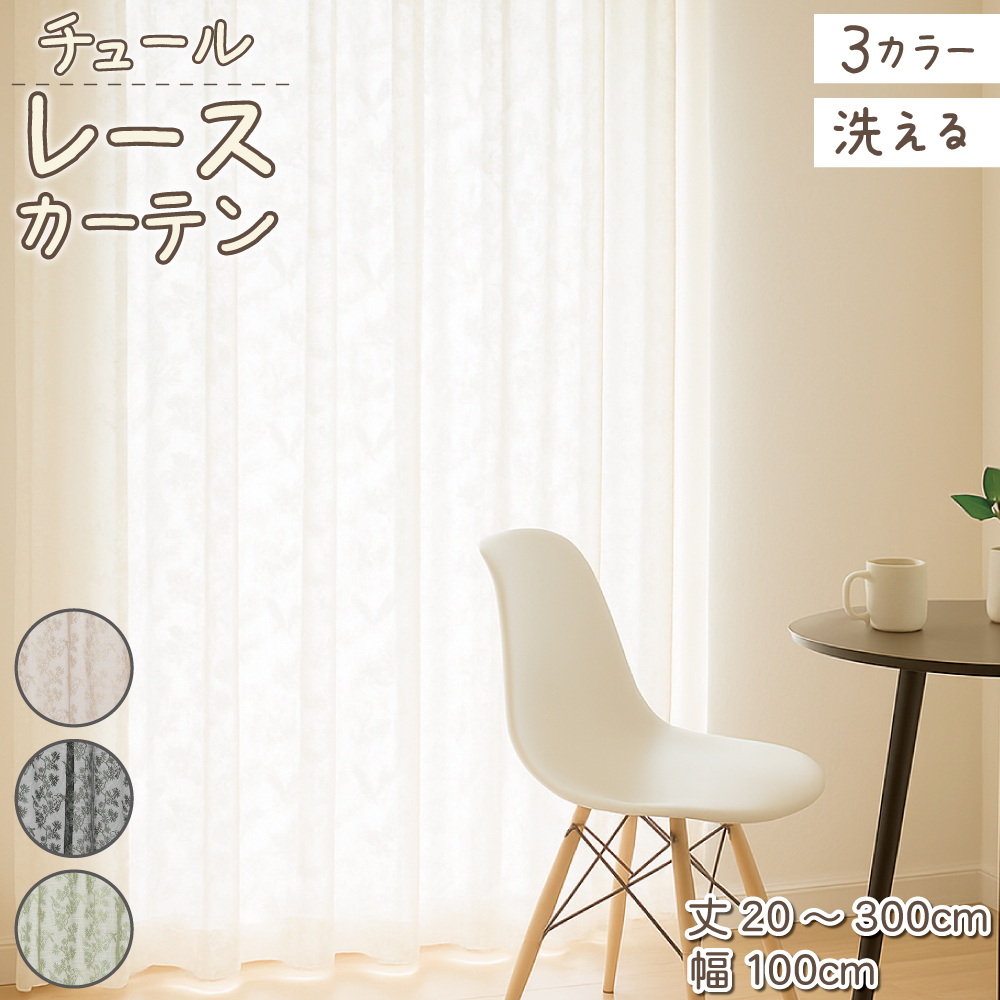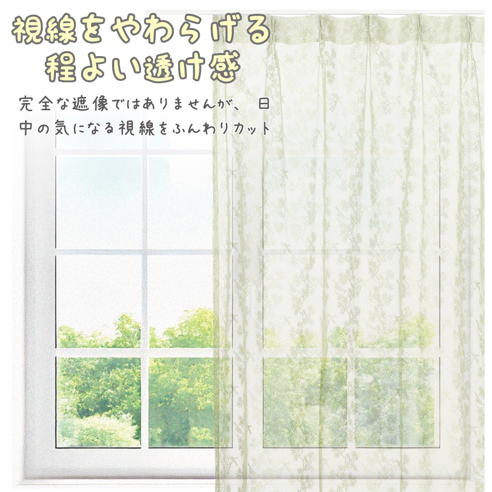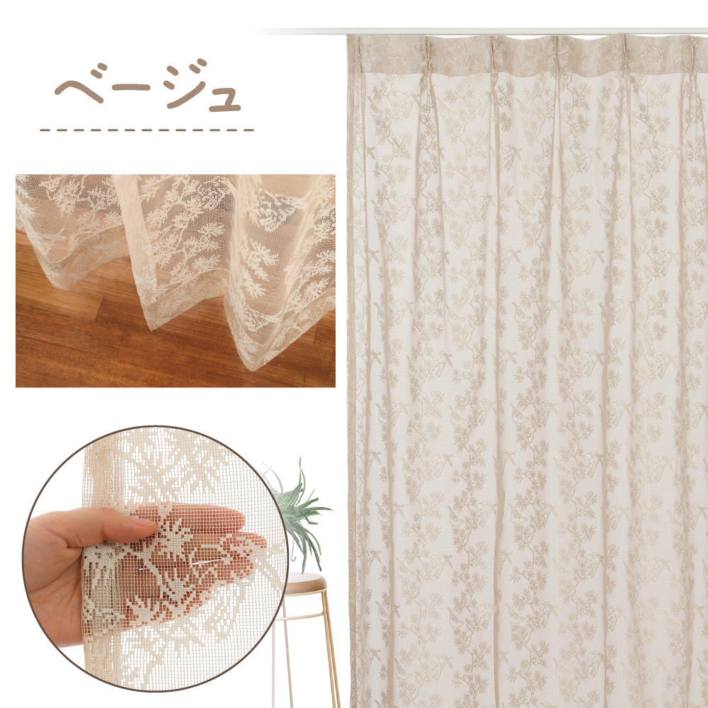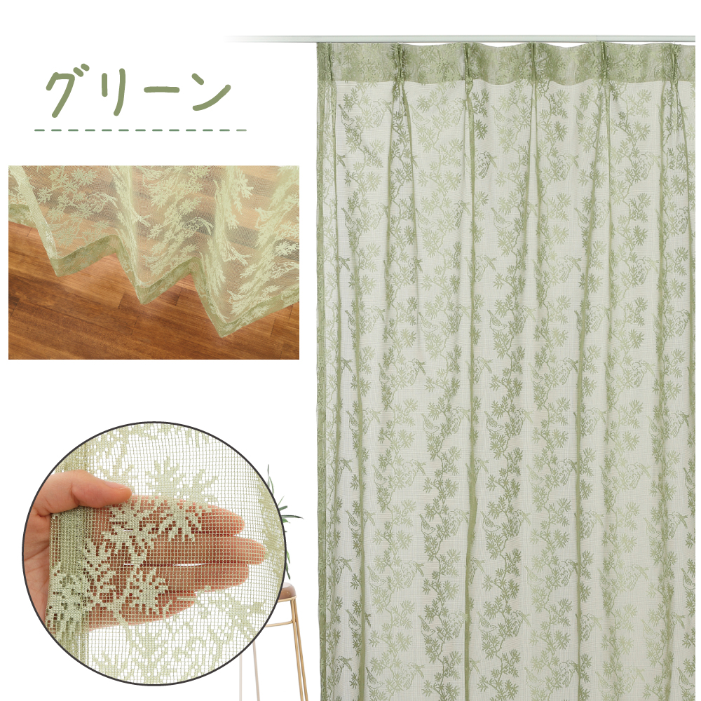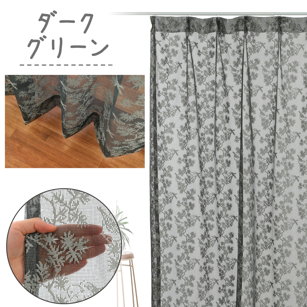 レースカーテン 丈サイズオーダー 「トリ」 チュール おしゃれ 北欧調 幅100cm 丈20cm〜300cm