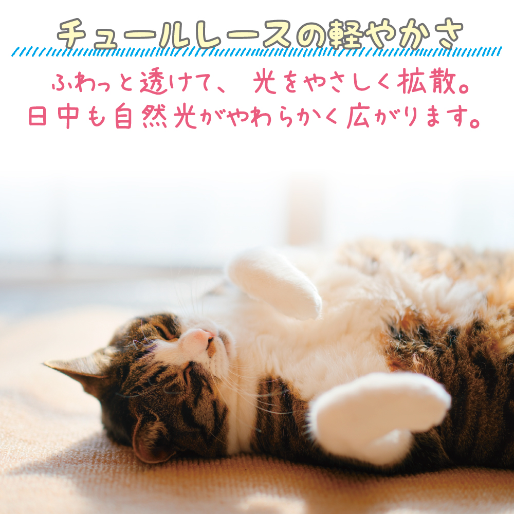 細やかで繊細なチュール生地は、外からの視線をふんわりとやわらげつつ、室内にはしっかり光を取り込み、明るく優しい雰囲気を演出。