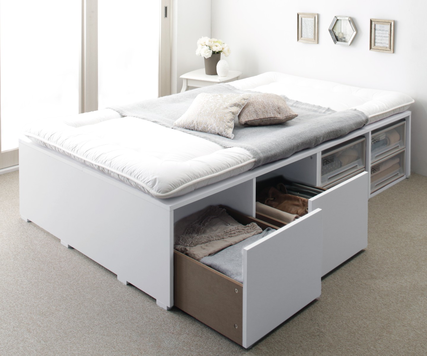 ホワイト ベッド チェストベッド 大容量収納ベッド/センペール2のための 専用別売品 ハイタイプ 引き出し2杯 ベッドはありません