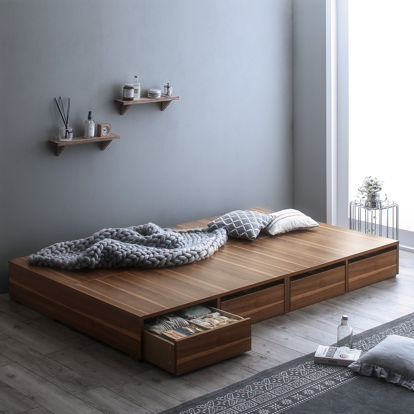 Wブラウン ベッド チェストベッド 大容量収納ベッド/センペール2のための 専用別売品 ロータイプ 引き出し2杯 ベッドはありません