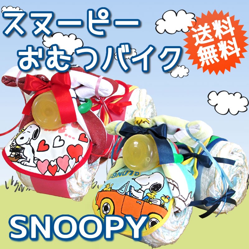 おむつケーキ スヌーピー おむつバイク オムツケーキ 出産祝い ギフト 男 女