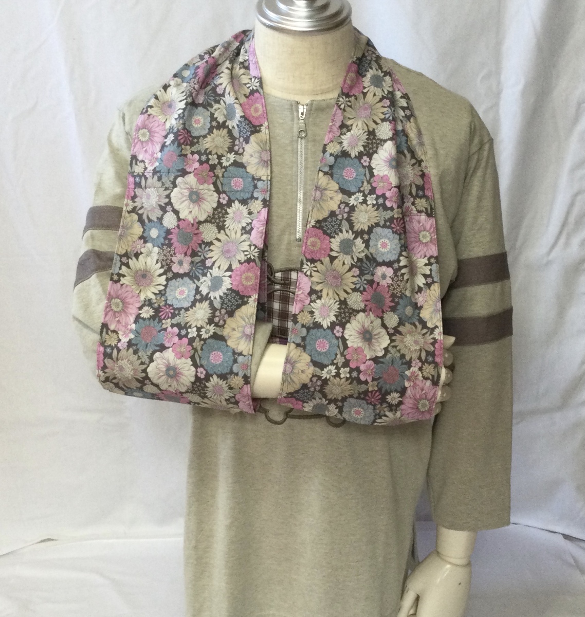 アームバンド 三角巾 綿生地 花柄 大柄 チャコール地 AB‐C38 脳卒中後の片麻痺の腕つり三角巾