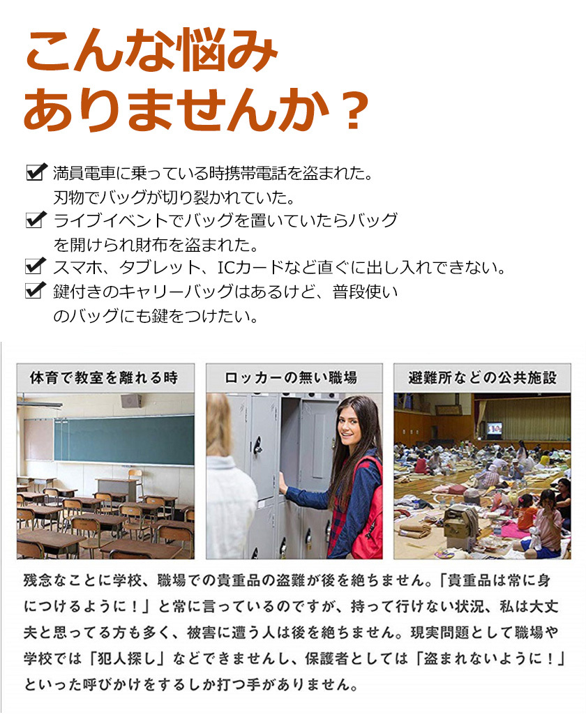 海外旅行だけでなく、電車やバス、花火大会など人混みでのスリ対策に、安心してお使い頂ければと思います。