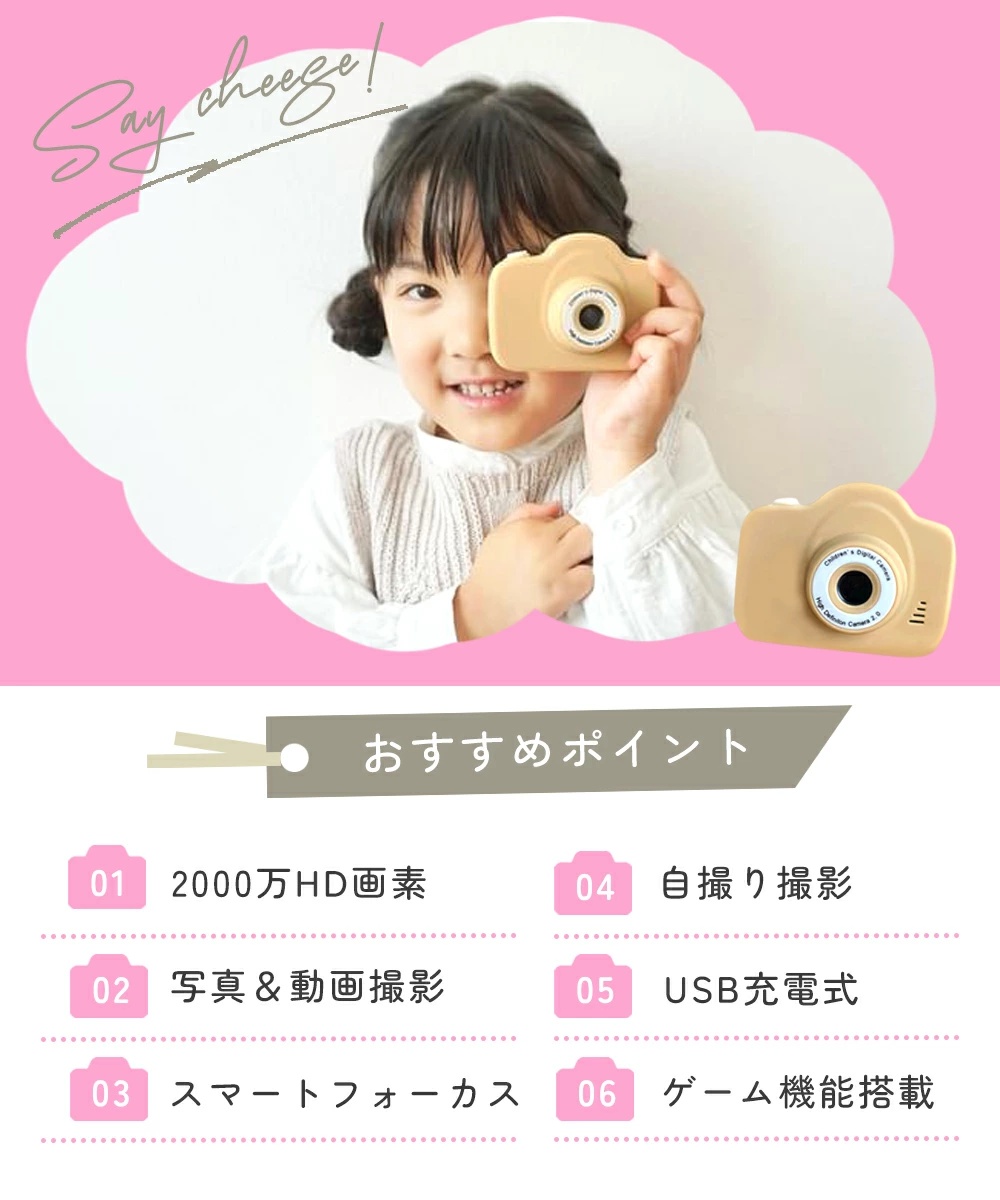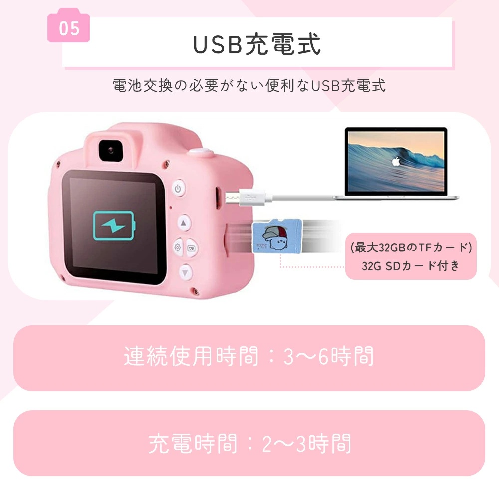 キッズカメラ トイカメラ 子供用カメラ 2000w画素 32GSDカート付き デジタルカメラ 写真 動画 ビデオ 自撮可能 USB充電 軽量 おもちゃ 子供 プレゼント