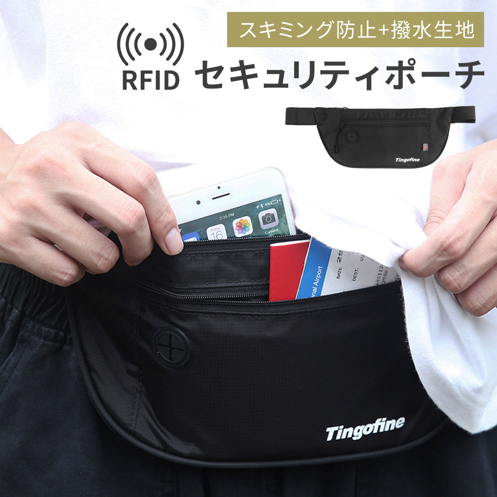 セキュリティポーチ スキミング防止 海外旅行 薄型 防犯 撥水 軽量 パスポート 財布 斜め掛け 貴重品 ポーチ 薄い 隠せる 腹巻き ウエストポーチ 盗難防止