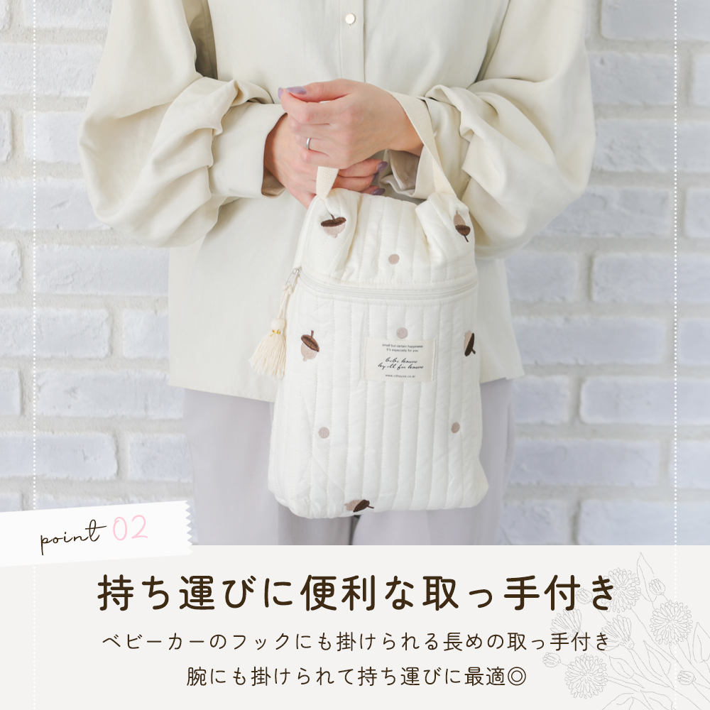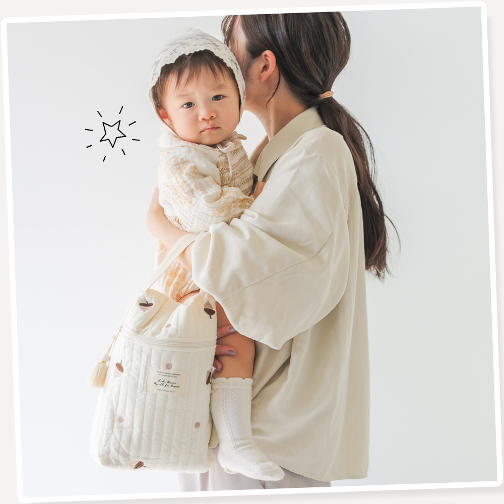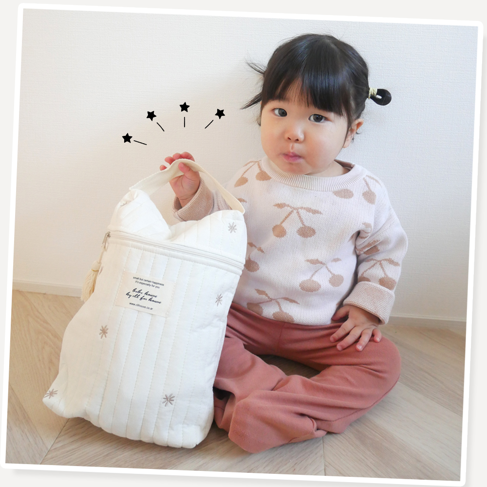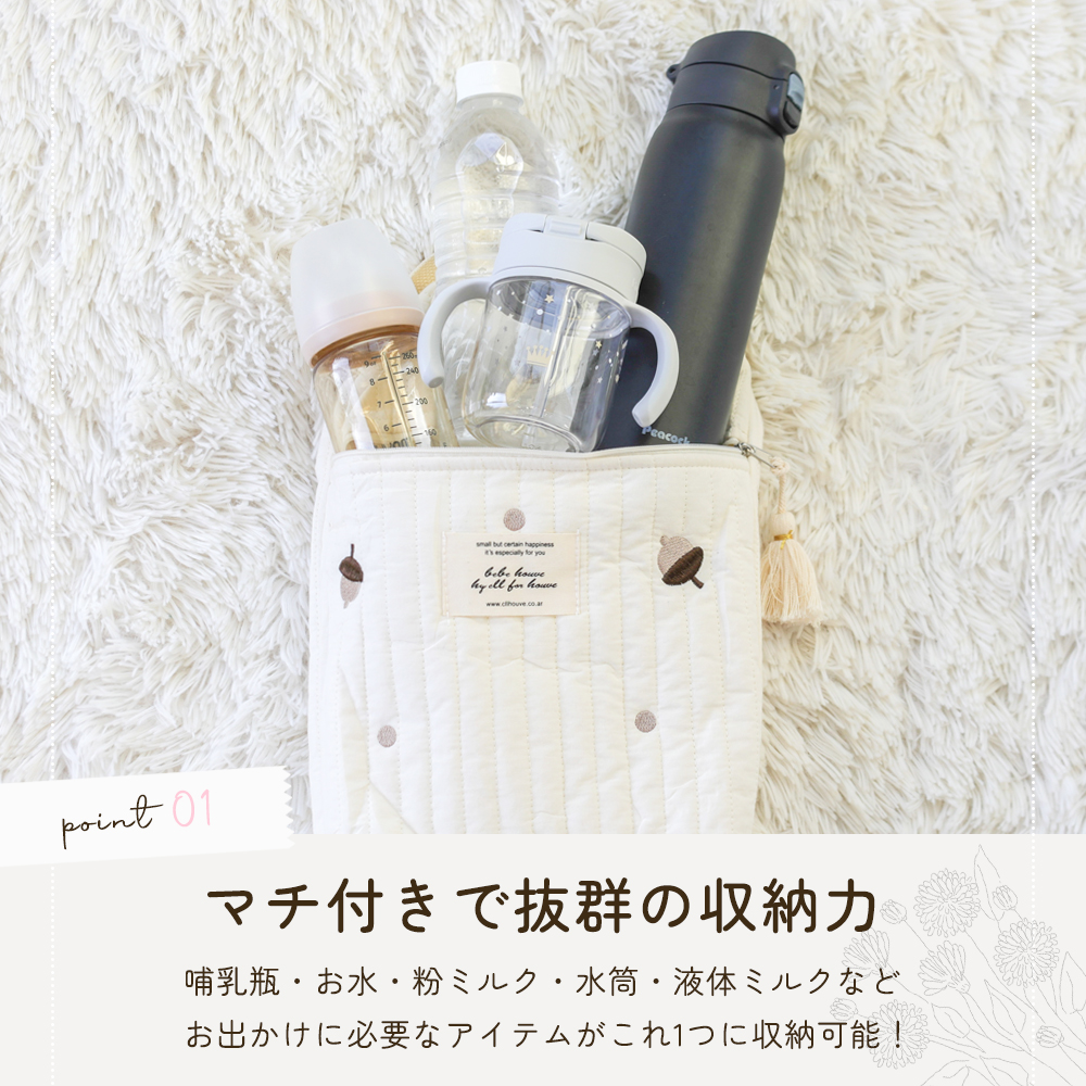 マチ付きなので、哺乳瓶やおむつなどのベビー用品がたっぷり収納できます。