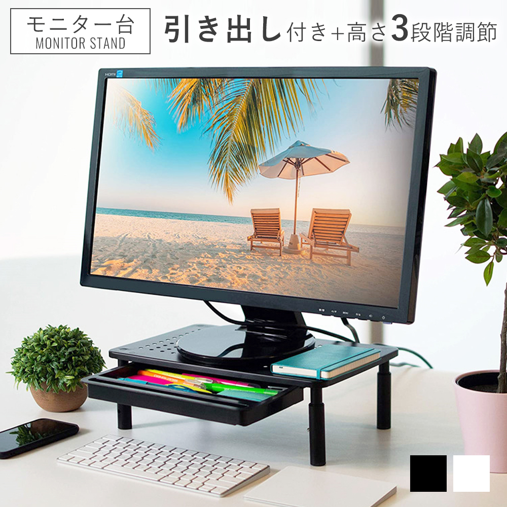 モニター以外に、プリンターや電話機、FAX、本など色々なものが設置できるので