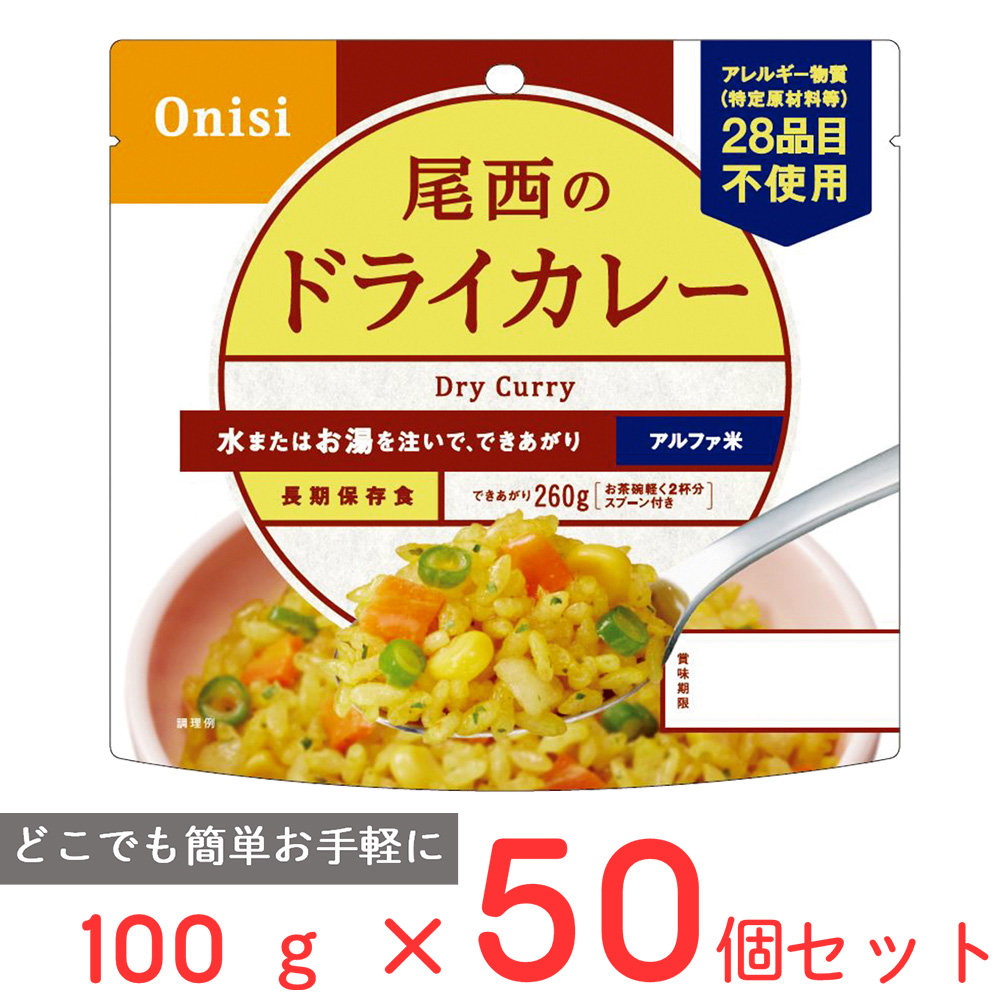 訳あり40%OFF 尾西食品 アルファ米 ドライカレー 1食分 非常食 長期保存 100g×50個 【賞味期限2031年04月30日】