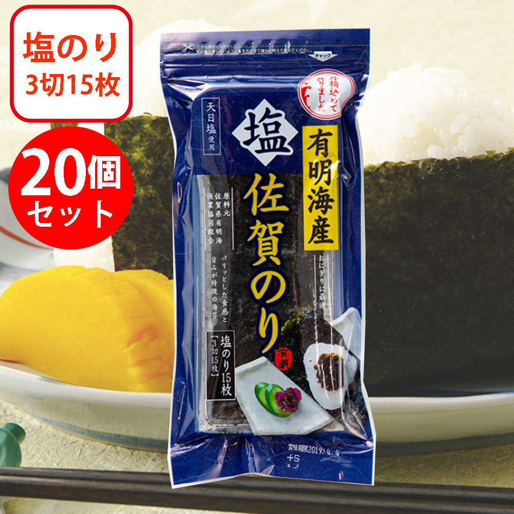 佐賀海苔 有明海産佐賀のりおにぎり塩のり 3切15枚×20個