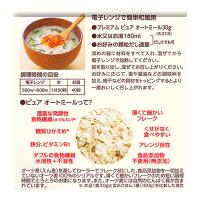 日本人にあわせて加工されたオーツ麦(えん麦)100%のオートミールです。オートミールは発酵性食物繊維(β-グルカン)が豊富で糖質控えめです。その他に鉄分やたんぱく質、ビタミンB1、2種類の食物繊維(水溶性及び不溶性)が含まれており、体にやさしい食品です。国内工場で特殊焙煎しているため、香ばしく、くせがなく、そのままでもお召し上がりいただけます。またお好みのフルーツ、ナッツを加え、メープルシロップ、シナモン、フルーツソースなどで味つけをし、冷たい牛乳やヨーグルトをかけて朝食としたり、クッキー、パン、ケーキの原材料やハンバーグのつなぎとしてなどアレンジ自在です。