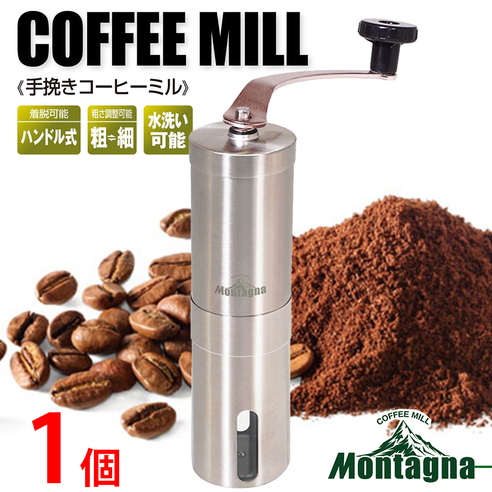 アウトドアで手軽に挽きたてコーヒーを味わえるコーヒーミル。手動式でハンドルを回すだけで簡単にコーヒー豆を挽けます。粗挽き・中挽き・細挽きと粗さ調整が可能。ハンドルとシリンダーは分解できるので持ち運びが楽々。分解して丸洗いできるので衛生的で利便性も抜群。挽きたてのコーヒー豆を使えば香り高い贅沢なひと時を味わえます。