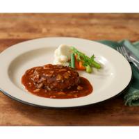 ビーフの旨みがたっぷり。きのこの入ったデミグラスソースと一緒に。牛の赤身肉のおいしさが口いっぱいに広がる、ビーフの旨みたっぷりのハンバーグ。ソテーして香りを引き出したきのこの風味をギュッと閉じ込めたデミグラスソースと一緒に。