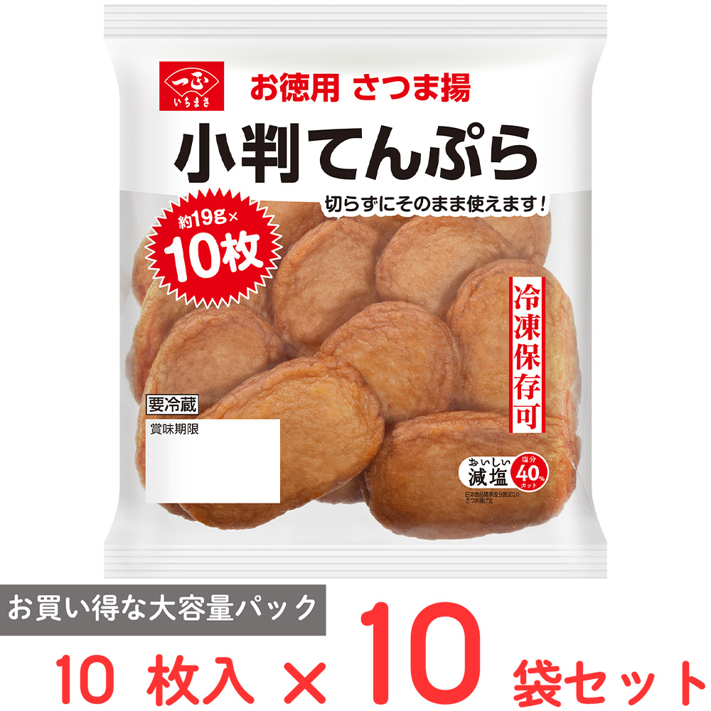 お買い得な大容量パックのさつま揚。【冷凍保存可能なさつま揚げです】●日本食品標準成分表2020「さつま揚げ」と比較して塩分を40%カットしました。●10枚入りでお買い得な大容量パック●冷凍保存可能