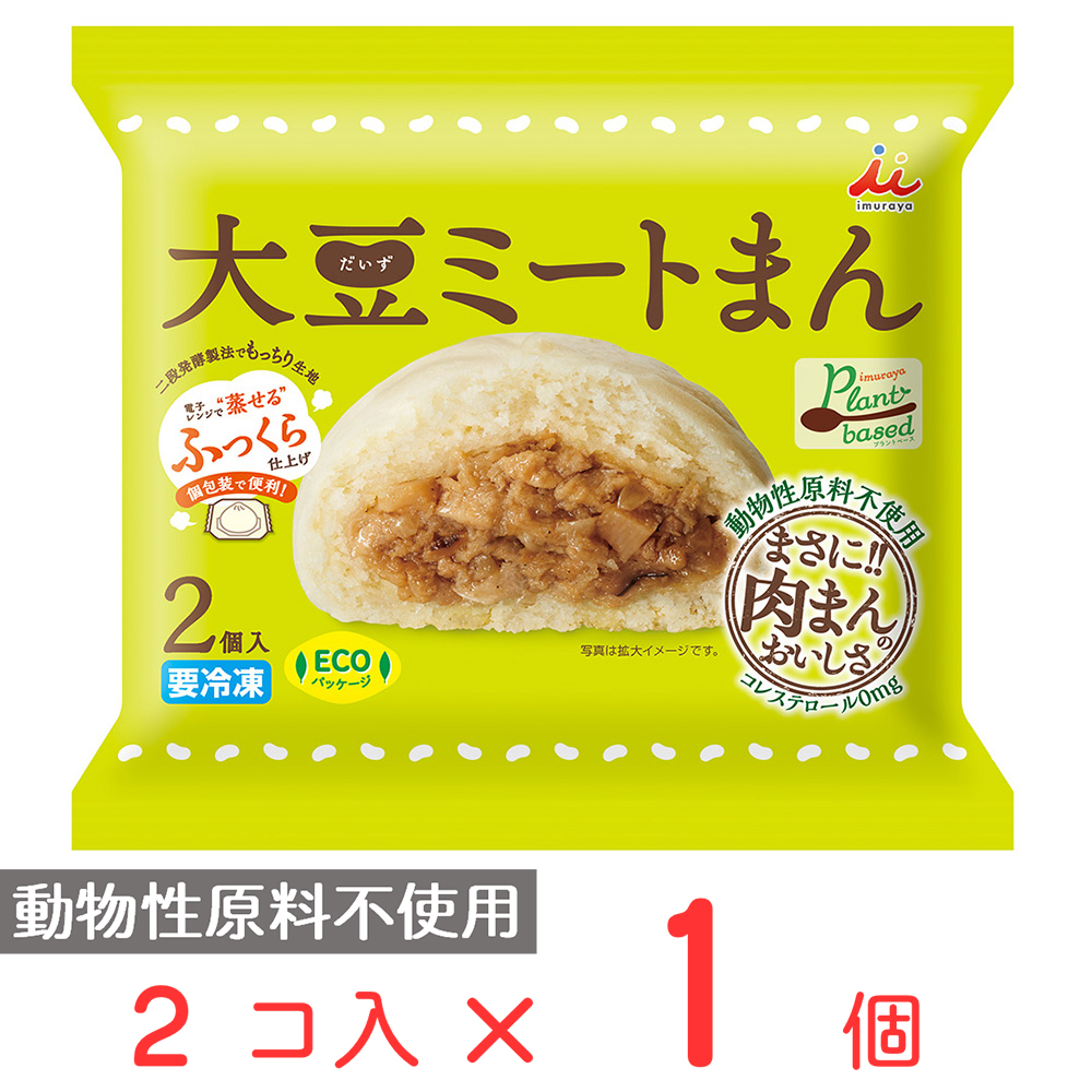 おいしさはそのままに動物性原料を一切使用していない肉まんです。【原料】動物性原料を一切使用していない肉まんです。【製法】「二段発酵製法」によるもっちりとした食感と風味のある生地を楽しんでいただけます。【形態】個包装化により、ご家庭でもよりおいしくお手軽に召しあがっていただけます。