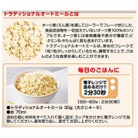 トラディショナルスタイルは、厚めのフレークで1粒1粒がしっかりしているため、食感を楽しめるのが特徴です。オートミールには発酵性食物繊維(β-グルカン)が豊富※に含まれ、糖質ひかえめ※で、その他に、鉄分やたんぱく質、ビタミンB1、2種類の食物繊維(水溶性及び不溶性)が含まれており、体にやさしい食品です。国内の工場で特殊焙煎しているため、香ばしく、くせがなく、そのままでもお召し上がりいただけます。毎日のごはん(主食)として、オートミールの栄養を手軽に摂ることができます。※本品1食30gと玄米ごはん1膳(150g)を比較した場合